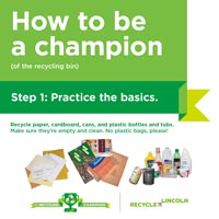 You, the garbage and recycling collectors of Lincoln, play a critical role in communicating good recycling practices to residents and businesses. The City of Lincoln thanks you for your leadership and work to keep our community clean. As part of the campaign to divert corrugated cardboard from the landfill, the City of Lincoln has developed a number of resources that you can easily download and share with your customers. Together, we can help more people get in the game and take their recyclables to the right bin.